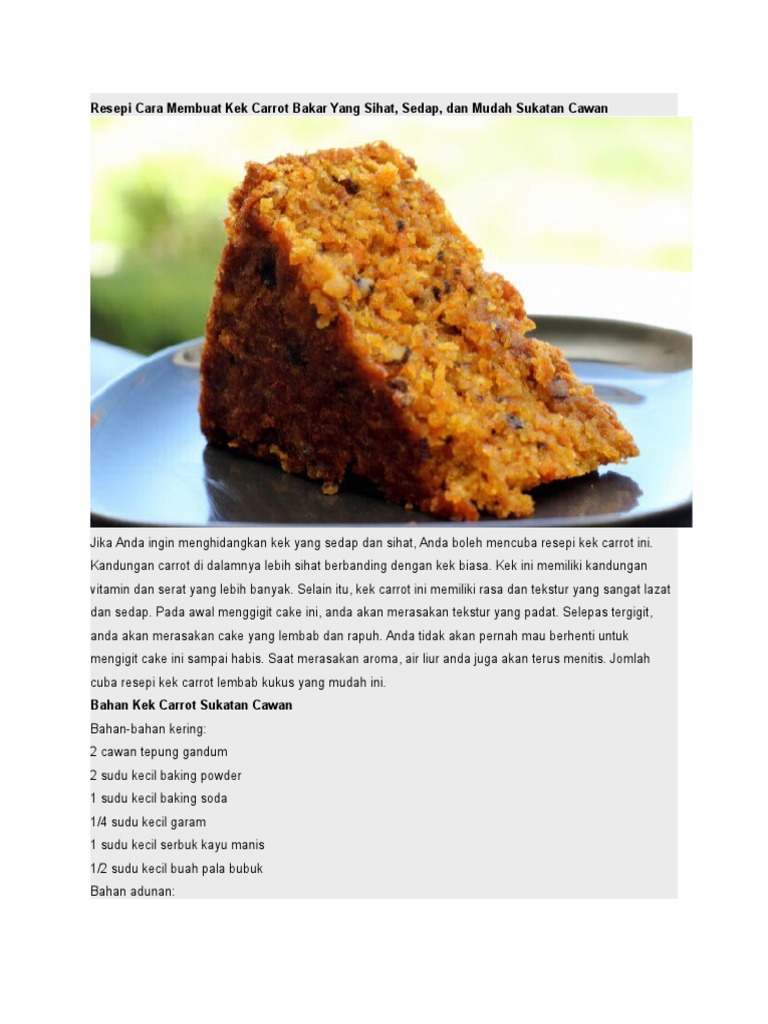 Resepi Kek Carrot Sukatan Cawan Paling Sedap