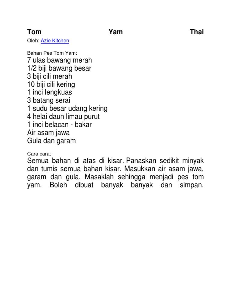 Resepi Tom Yam Thai Azie Kitchen